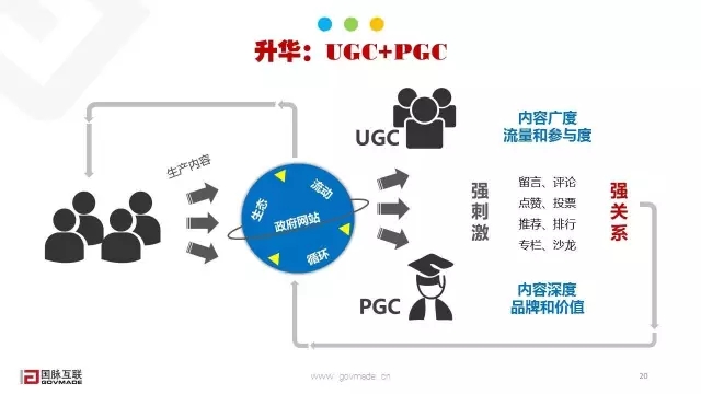UGC是用戶生成的內(nèi)容,PGC就是專業(yè)人士生產(chǎn)的內(nèi)容,強(qiáng)化這二者的結(jié)合其結(jié)果就是能夠使我們剛才所說的信息互動(dòng)的層面和信息產(chǎn)生的層面進(jìn)行有效的連接,促進(jìn)網(wǎng)站整個(gè)信息的流動(dòng)和循環(huán)。UGC主要是負(fù)責(zé)內(nèi)容的廣度,是貢獻(xiàn)流量和用戶的參與度;PGC維持的是內(nèi)容的深度。通過PGC樹立網(wǎng)站的品牌創(chuàng)造價(jià)值,可以說這二者是缺一不可的。在整個(gè)網(wǎng)站的互動(dòng)的過程中通過留言、評(píng)論、點(diǎn)贊、投票、推薦、排行、專欄、沙龍等這些手段對(duì)用戶進(jìn)行一個(gè)強(qiáng)刺激。這樣會(huì)推動(dòng)用戶和網(wǎng)站形成一個(gè)強(qiáng)關(guān)系,也就是我們所說的提升用戶粘性。而這些與網(wǎng)站形成強(qiáng)關(guān)系的用戶,會(huì)進(jìn)一步為網(wǎng)站提供有價(jià)值的反饋、數(shù)據(jù)等信息,這樣就形成了網(wǎng)站信息的一個(gè)新源頭,對(duì)于活化網(wǎng)站資源,提升網(wǎng)站品牌價(jià)值具有很深刻的意義。