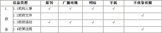 我們圍繞政務(wù)公開工作的實(shí)際需求重新定位并細(xì)分信息類型,然后根據(jù)信息類型的特性要求(準(zhǔn)確性/即時(shí)性/完整性/延續(xù)性/交互性)、信息源(黨政機(jī)關(guān)/企事業(yè)單位/公眾)、相關(guān)傳媒(圖/文/影音)和媒體類型(報(bào)刊/廣播電視/網(wǎng)站/手機(jī))等多套指標(biāo)體系展開分析和匯總,從而形成具有指導(dǎo)意義的分析成果。(如下表)