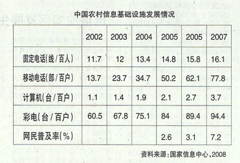 農(nóng)村人口對(duì)電腦設(shè)施的需求,也就是對(duì)超出生活基本設(shè)施的交往設(shè)施的需求很容易被人低估。首先,我們很多鄉(xiāng)鎮(zhèn)、城市近郊農(nóng)民消費(fèi)水平、消費(fèi)意識(shí)與縣城居民比較接近。其次,龐大的返鄉(xiāng)農(nóng)民工群體必然會(huì)把他們?cè)诔鞘兄斜怀醪脚嘤饋?lái)的新型生活習(xí)慣和消費(fèi)需求帶回去,尤其是體現(xiàn)在信息類消費(fèi)方面。這些人中大多數(shù)年輕人已經(jīng)習(xí)慣收發(fā)短信,打便宜的IP電話或者公話,以及上網(wǎng)吧娛樂、交朋友。也就是說(shuō),返鄉(xiāng)農(nóng)民工很可能恰恰是第一批完成初步信息化的農(nóng)民,這對(duì)于我國(guó)農(nóng)村信息化來(lái)說(shuō)是一批寶貴的人才資源、用戶資源。當(dāng)信息化人才回流到鄉(xiāng)村的時(shí)候,如果能以強(qiáng)有力的手段、更大的政策力度推動(dòng)電腦、網(wǎng)絡(luò)、信息等資源要素也向鄉(xiāng)村匯聚,那么我們推了很久的農(nóng)村信息化就很可能快速升溫,達(dá)到沸點(diǎn)或燃點(diǎn)。因此,推進(jìn)“電腦下鄉(xiāng)”的意義在于以信息化手段武裝農(nóng)民,幫助他們尋找增收致富的信息,其重要性不亞于“家電下鄉(xiāng)”本身。