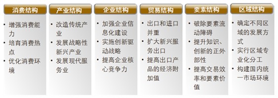 中國經(jīng)濟(jì)轉(zhuǎn)型升級的關(guān)鍵是經(jīng)濟(jì)結(jié)構(gòu)的調(diào)整。經(jīng)濟(jì)結(jié)構(gòu)是一個(gè)籠統(tǒng)的概念,從宏觀看包括需求結(jié)構(gòu)、所有制結(jié)構(gòu)、貿(mào)易結(jié)構(gòu)、分配結(jié)構(gòu)、產(chǎn)業(yè)結(jié)構(gòu)、區(qū)域結(jié)構(gòu)、市場結(jié)構(gòu)等,從微觀看包括企業(yè)結(jié)構(gòu)、產(chǎn)品結(jié)構(gòu)、要素結(jié)構(gòu)、技術(shù)結(jié)構(gòu)等?,F(xiàn)階段,我國經(jīng)濟(jì)轉(zhuǎn)型升級,應(yīng)重點(diǎn)關(guān)注以下六大結(jié)構(gòu)調(diào)整。