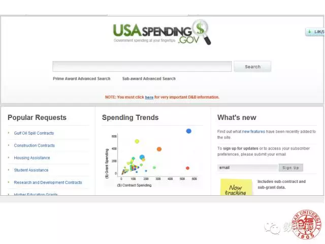 下面舉幾個例子,美國最早通過《信息自由法》來推動信息公開,第一張USAspeding.gov是關(guān)于財政數(shù)據(jù)的公開,第二張recovery.gov是美國金融危機后七千億美元救市計劃的公開,你可以看到加州和紐約州投的錢比較多,點開地圖上的每一個點,會告訴你這個地方多少錢,給到哪些機構(gòu),已經(jīng)花了多少錢,創(chuàng)造了多少工作機會等等。