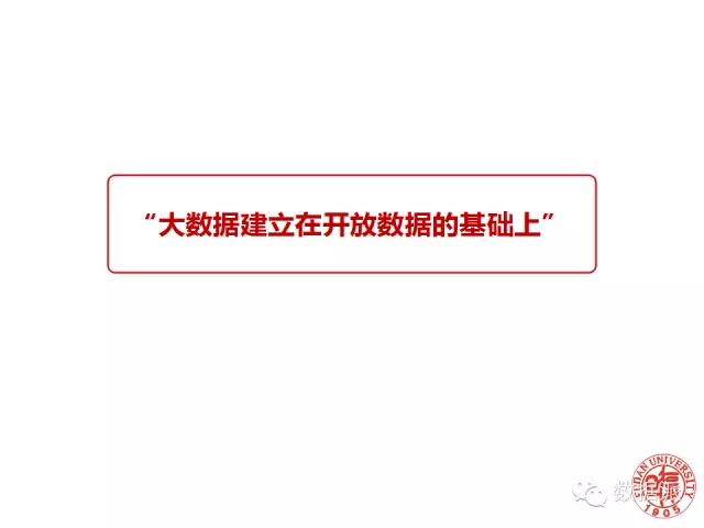 2013年美國GIQ期刊的主編馬里蘭大學(xué)的教授Bertot就說:“大數(shù)據(jù)建立在開放數(shù)據(jù)的基礎(chǔ)上”,不然一個個都是信息孤島、數(shù)據(jù)孤島,怎么可能帶來大數(shù)據(jù)時代?在這種情況下,政府先把自己的數(shù)據(jù)開放出來,可以引領(lǐng)大數(shù)據(jù)時代的到來。