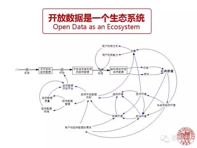 總體來說,開放數(shù)據(jù)到產(chǎn)生價值是一個非常復(fù)雜的動態(tài)的過程,涉及到各種利益相關(guān)方,有各種因果關(guān)系和利益關(guān)系,要使整個循環(huán)成為一個正循環(huán),而不是成為一個堵塞的循環(huán),就要讓這件事產(chǎn)生效果,讓政府更愿意開放。產(chǎn)生更好的效果了,也就更愿意開放,開發(fā)者也會更積極得來利用數(shù)據(jù)。