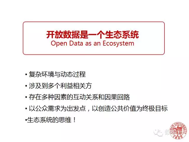 政府要有一個生態(tài)系統(tǒng)的思維。開放數(shù)據(jù)不是甲乙方外包關(guān)系、購買服務(wù)的關(guān)系,政府要做的工作是培育圍繞開放數(shù)據(jù)的生態(tài)系統(tǒng)。