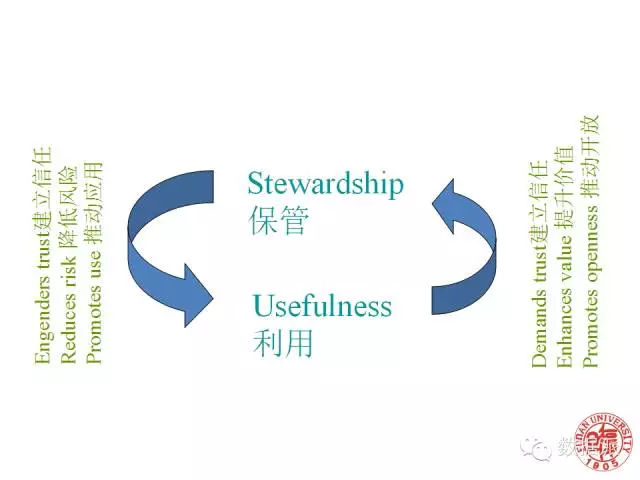最后呼應(yīng)一下早上張楠老師講的觀點,安全和數(shù)據(jù)開放不是一對矛盾,他們是一個相輔相成的過程。信息政策里有一個理論框架:第一個原則是保管的原則,把數(shù)據(jù)的安全和質(zhì)量問題解決好;第二個原則是利用的原則,不僅要把數(shù)據(jù)管好,更要把數(shù)據(jù)充分利用起來,產(chǎn)生價值。兩個原則互為補充,只有管好了數(shù)據(jù),才能產(chǎn)生信任、降低風(fēng)險,有利于更好地利用數(shù)據(jù),反過來,數(shù)據(jù)利用得越好,創(chuàng)造的價值越大,政府就對你越信任,也更愿意推動利用。安全有保障,才會更愿意開放,利用得越好,政府也更愿意花力氣去提升數(shù)據(jù)質(zhì)量、保證安全。如果安全出了風(fēng)險,利用就進(jìn)行不下去了,數(shù)據(jù)不利用了,管理數(shù)據(jù)也就沒有價值了。這就好比圖書館的工作不僅是為了管理書,管理的目的是為了讓書被更好得利用,發(fā)揮它的價值。而只有管好書,才能更好地把書借出去,書借出去了,還要能管得好,收得回來,這兩個是相輔相成的關(guān)系。開放和安全也是這樣的關(guān)系。