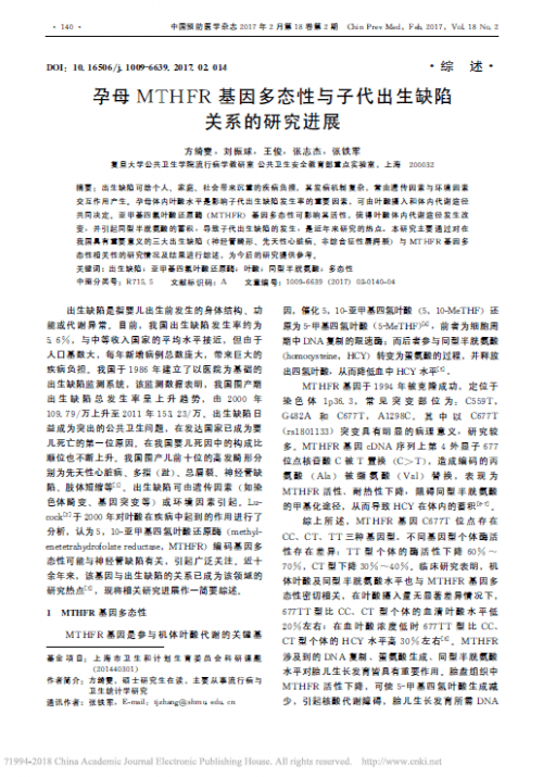 該研究項目成果論文——《上海地區(qū)孕婦MTHFR C677T基因多態(tài)性與血漿同型半胱氨酸水平的關(guān)聯(lián)性分析》已收錄于《中華疾病控制雜志2017年7月第21卷第7期》、論文——《孕母MTHFR基因多態(tài)性與子代出生缺陷關(guān)系的研究進(jìn)展》收錄于《中國預(yù)防醫(yī)學(xué)雜志2017年2月第18卷第2期》。