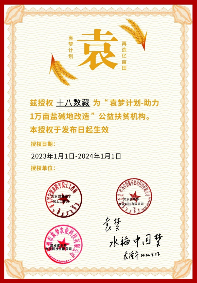 古有天工開物,今人繼往開來。袁隆平院士的事跡在這片他深愛著的土地上永久流傳,而他那些質(zhì)樸無華又?jǐn)S地有聲的話語,也無時無刻不在催人后繼賡續(xù)前行。袁隆平精神是勇攀高峰的科學(xué)精神,是腳踏實地的追夢精神,也是中華民族精神品格和中國優(yōu)秀文化的集中體現(xiàn)。作為中華優(yōu)秀文化的傳承者和弘揚者,十八數(shù)藏通過數(shù)字化形式,圍繞數(shù)字藏品領(lǐng)域發(fā)揮獨特功能優(yōu)勢,為“袁夢計劃”及公益領(lǐng)域賦能,通過鏈接機構(gòu)、企業(yè)、社會大眾等多方,展示袁隆平精神的豐富內(nèi)涵和時代價值,將袁隆平院士“中華拓荒人”的薪火傳承下去,讓更多的人了解并參與袁夢計劃,為中國的鹽堿地改良事業(yè)添磚加瓦。