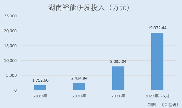 據(jù)招股書,2019-2021年及2022年1-6月,湖南裕能研發(fā)投入分別為1,752.60萬元、2,414.84萬元、8,035.04萬元、19,372.44萬元。