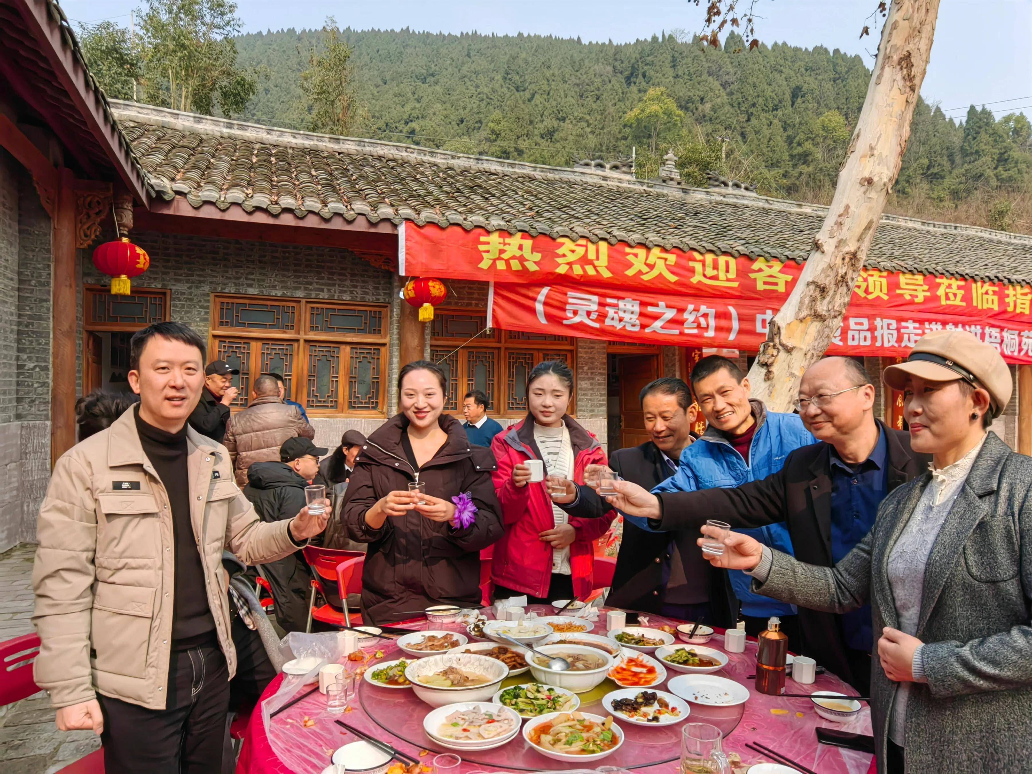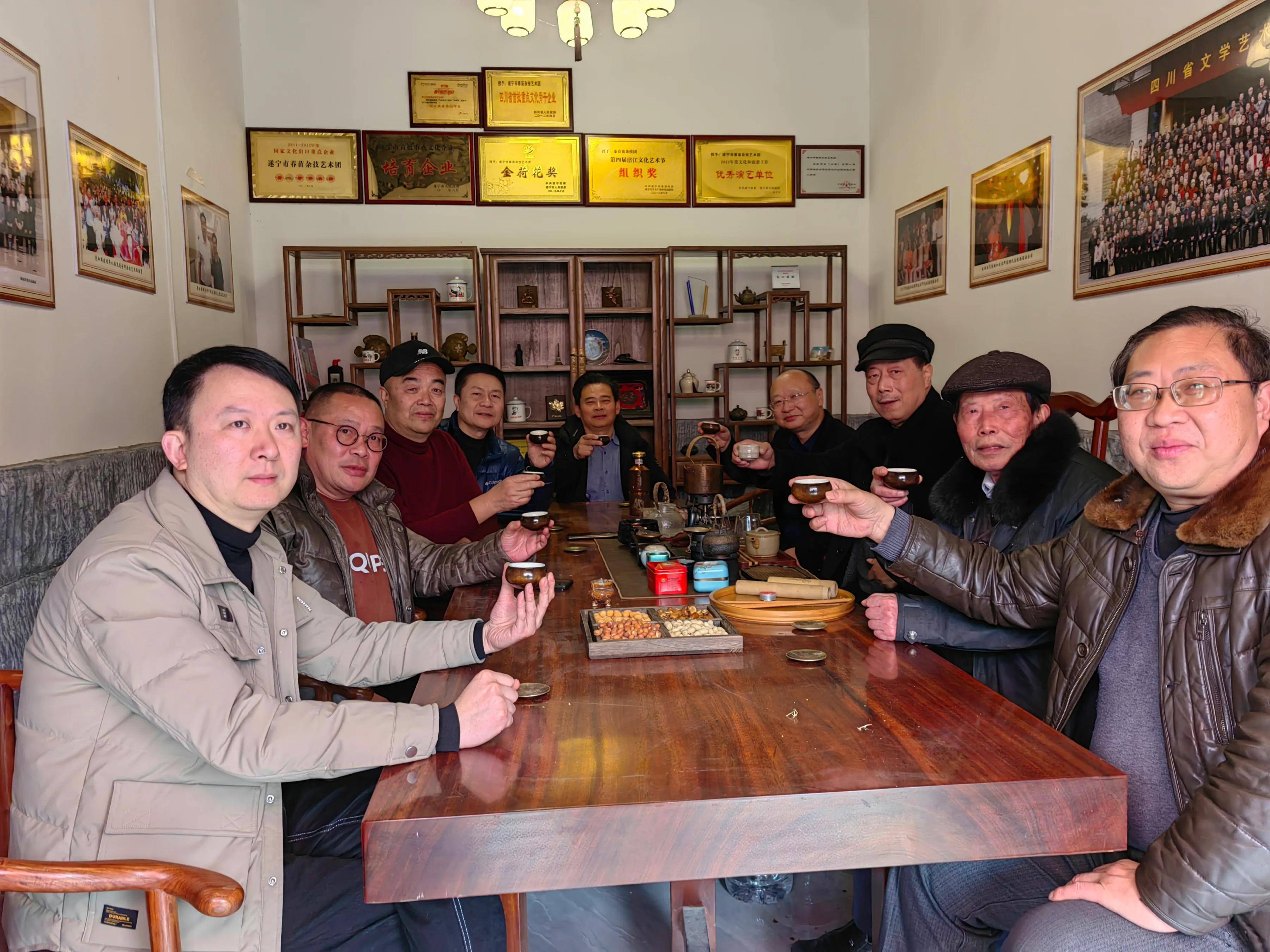 陳之昂故里,詩酒醉射洪。立春相約梧桐苑,名流遇見大宗師。敘相交之情,話老莊哲學(xué)。品美酒神韻,尋文化之根。相逢終有別,惜緣再言歡。待山花爛漫,逍遙把酒干。