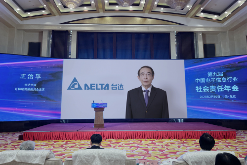 (圖為臺達(dá)中國大陸可持續(xù)發(fā)展委員會主 席王治平先生受邀在第九屆電子信息行業(yè)社會責(zé)任年會上分享臺達(dá)可持續(xù)發(fā)展經(jīng)驗)
