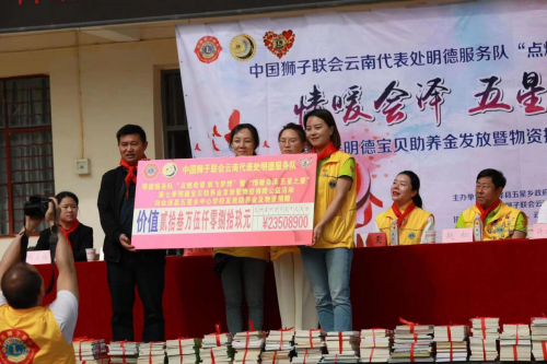 4月23日,在五星小學(xué)舉辦了“點(diǎn)燃希望·放飛夢(mèng)想”暨“情暖會(huì)澤 五星之愛”物資現(xiàn)場(chǎng)捐贈(zèng)活動(dòng)。中國(guó)獅子聯(lián)會(huì)云南代表處明德服務(wù)隊(duì)及友隊(duì)為各學(xué)校捐贈(zèng)校服、飲水機(jī)、故事機(jī)、體育設(shè)備、學(xué)習(xí)用品等共計(jì)價(jià)值235089.00元的愛心物資。