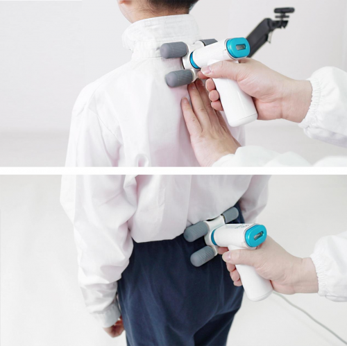 此外,由于該設(shè)備操作簡單,僅需單人手握測量輪,從頸7到腰5,沿著棘突自上而下滾動一次,便能于10秒鐘內(nèi)完成測量。不僅避免了青少年在檢測過程中受到的各種傷害,還能消除篩查設(shè)備對于環(huán)境的需求,實現(xiàn)任意環(huán)境下的便捷篩查。