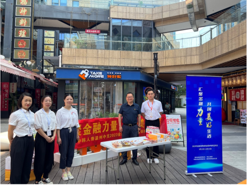 中韓人壽浙江金華中支黨支部成員帶頭,與中支內(nèi)外勤員工攜手走進(jìn)金華市寺后皇社區(qū)開(kāi)展金融宣傳活動(dòng),活動(dòng)得到了社區(qū)黨群中心及參會(huì)居民的熱情響應(yīng)和積極好評(píng)。