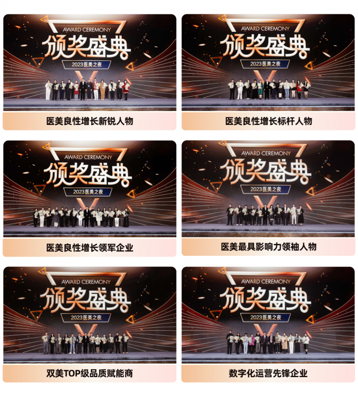 本屆醫(yī)美之夜頒獎(jiǎng)盛典共頒發(fā)“醫(yī)美良性增長(zhǎng)新銳人物”、“醫(yī)美良性增長(zhǎng)標(biāo)桿人物”、“醫(yī)美良性增長(zhǎng)領(lǐng)軍企業(yè)”、“醫(yī)美最具影響力領(lǐng) 袖人物”、“雙美TOP級(jí)品質(zhì)賦能商”和“數(shù)字化運(yùn)營(yíng)先鋒企業(yè)”六大獎(jiǎng)項(xiàng),匯集了行業(yè)極具影響力人物與機(jī)構(gòu),對(duì)2023年過(guò)去一年間,在醫(yī)美行業(yè)發(fā)展中做出突出貢獻(xiàn)的機(jī)構(gòu)和個(gè)人進(jìn)行表彰。此次盛典更是一次全行業(yè)的溝通交流盛會(huì),努力推動(dòng)國(guó)內(nèi)醫(yī)美行業(yè)發(fā)展新趨勢(shì)。
