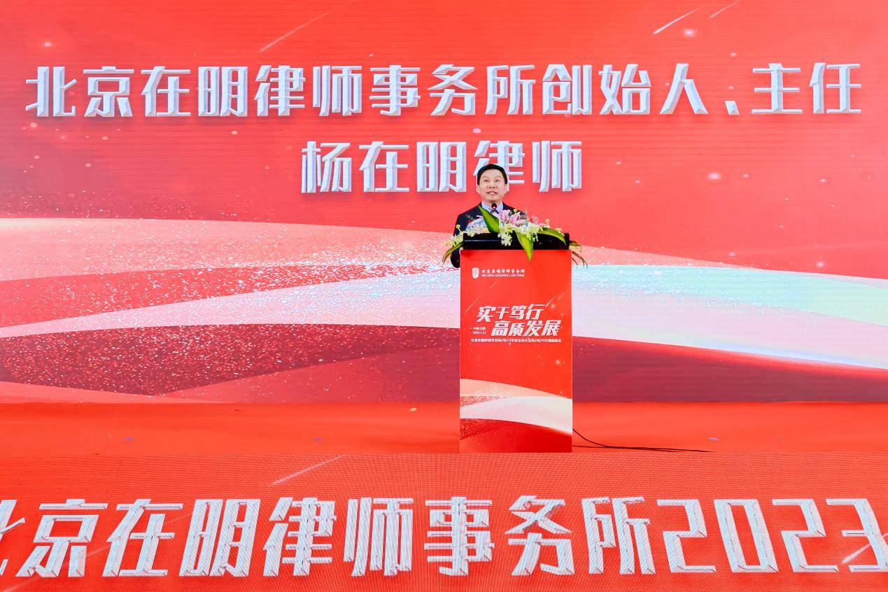 2024年1月21日下午,北京在明律師事務(wù)所(以下簡稱“在明律所”)2023年度表彰大會暨2024年迎新晚會在北京國際飯店舉行。本次年會以“實干篤行·高質(zhì)發(fā)展”為主題,凸顯了在明律所近年來“一手抓實干、一手謀高質(zhì)”的發(fā)展策略。中國政法大學(xué)法律碩士學(xué)院院長許身健,北京大學(xué)法學(xué)院教授湛中樂,中國政法大學(xué)教授郎佩娟,中國政法大學(xué)教授田瑤等業(yè)界專家,數(shù)十位媒體的記者朋友,以及600余名在明同仁出席了本次活動。