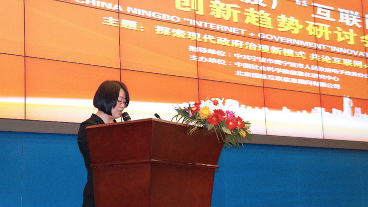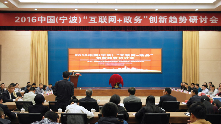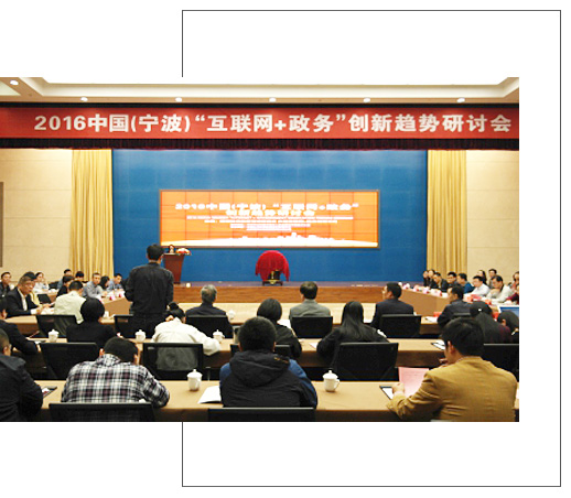 中國互聯(lián)網(wǎng)協(xié)會(huì)副理事長高新民、浙江省數(shù)據(jù)管理中心主任陳新忠、寧波市政府副秘書長兼辦公廳主任高慶豐、寧波市政府辦公廳副主任宣柏林、寧波市委市政府電子政務(wù)辦主任許躍軍、國脈互聯(lián)董事長楊冰之等出席會(huì)議并發(fā)表演講。會(huì)上,與會(huì)領(lǐng)導(dǎo)與專家共同見證了2016新版寧波市政府門戶網(wǎng)站的開通,分享了"互聯(lián)網(wǎng)+政務(wù)"推進(jìn)經(jīng)驗(yàn),共同探討十三五時(shí)期我國"互聯(lián)網(wǎng)+政務(wù)服務(wù)"的發(fā)展趨勢。